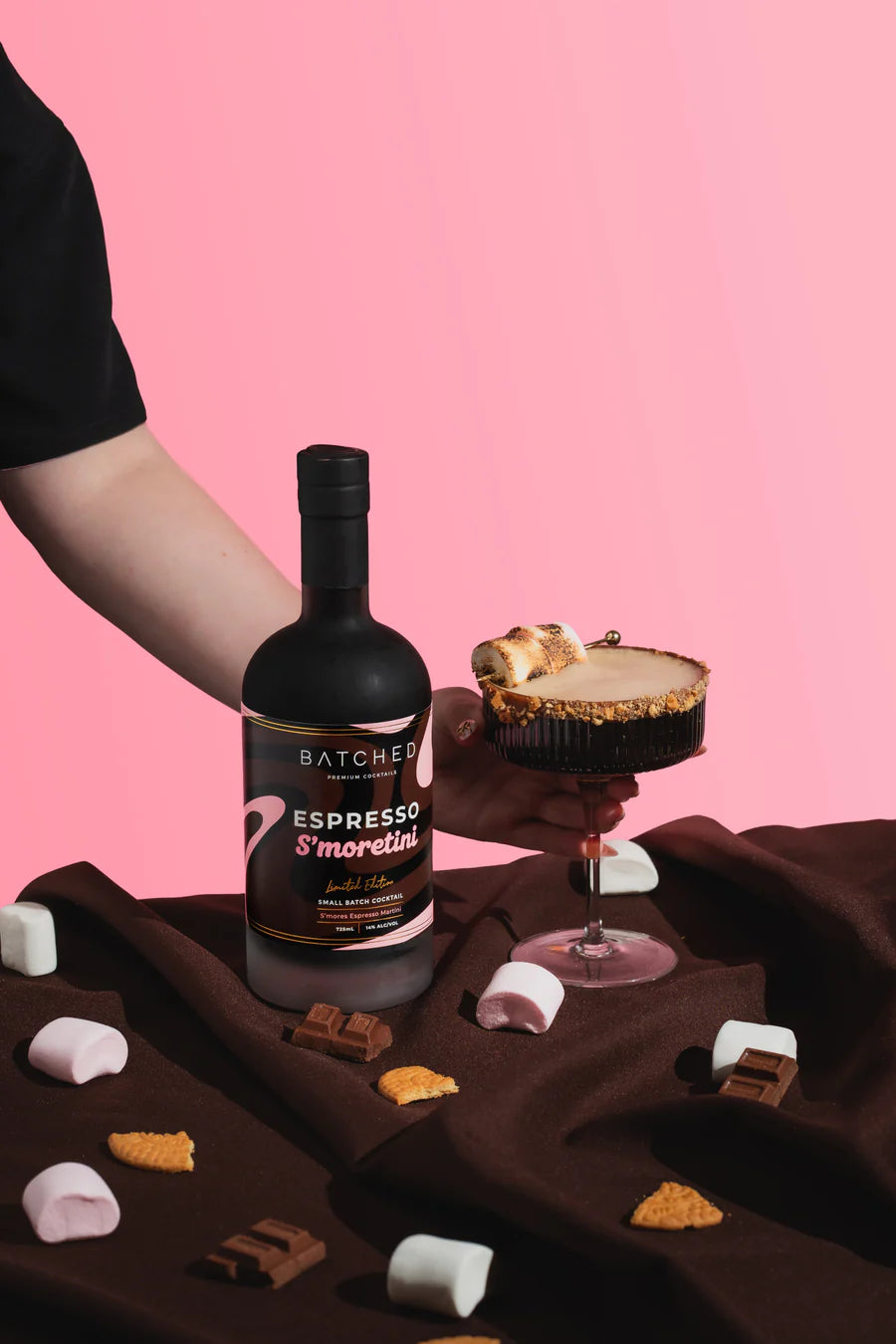 We've taken our classic Espresso Martini and given it a decadent twist. Bold cold-brew coffee and smooth vodka meet the nostalgic flavours of s'mores, fluffy marshmallow, rich chocolate, and a hint of biscuit.